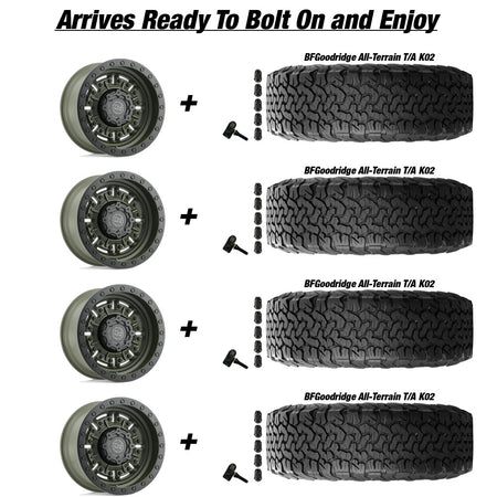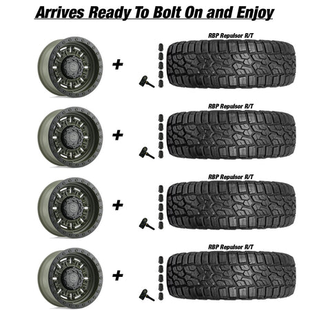 • (4) Mounted and balanced Tires. Your Choice of BFGoodrich All Terrain T/A K02 or RBP Repulsor R/T 37x12.5R17