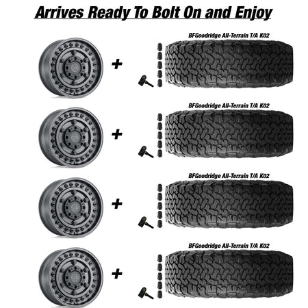 • (4) Mounted and balanced Tires. Your Choice of BFGoodrich All Terrain T/A K02 or RBP Repulsor R/T 37x12.5R17