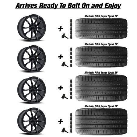 - (4) Your choice of mounted and balanced Continental ExtremeContact Sport 02 or Michelin Pilot Super Sport ZP tires (285/30/19 Fronts and 335/25/20 Rears)