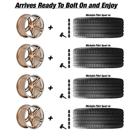 Ferrada CM1 Tesla Model 3 20" Front and Rear Wheel and Tire Package - Brushed Cobre