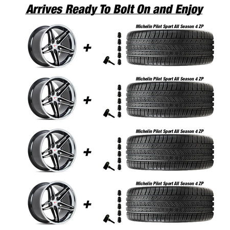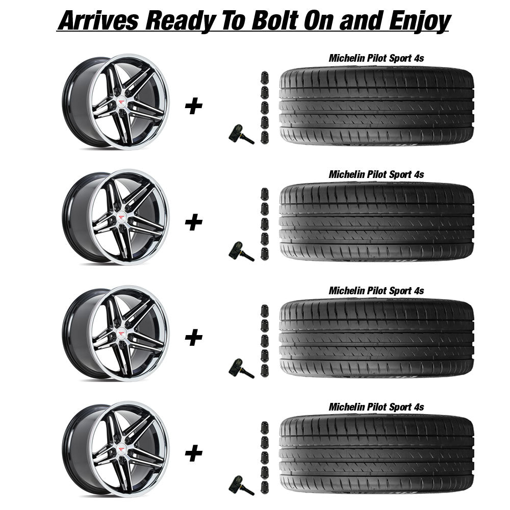 Ferrada CM1 Tesla Model 3 20" Front and Rear Wheel and Tire Package - Black w/ Machined Face