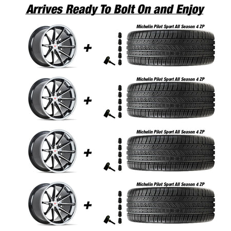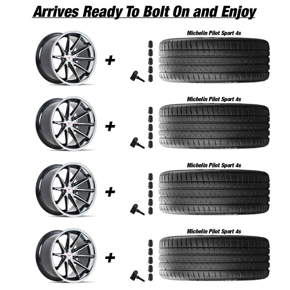 Ferrada CM2 Tesla Model 3 20" Front and Rear Wheel and Tire Package - Black w/ Machined Face