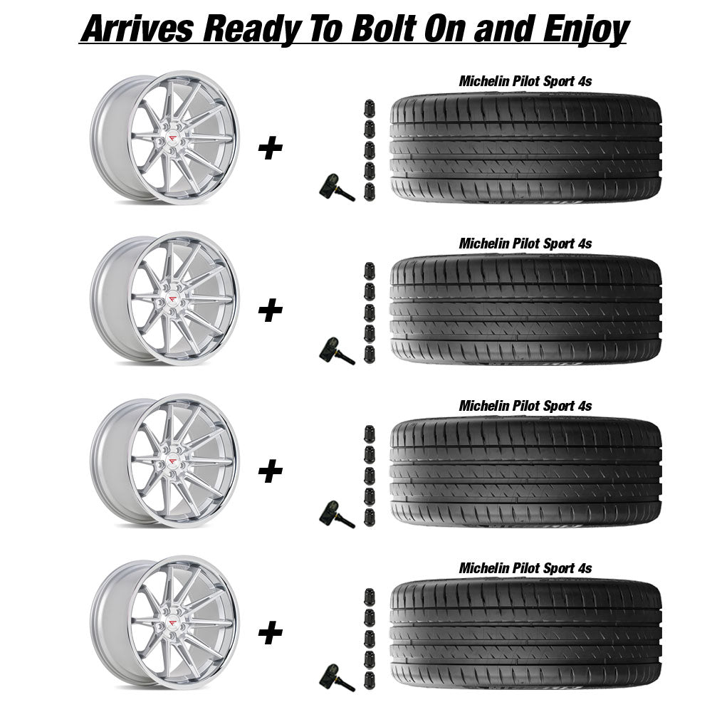 Ferrada CM2 Tesla Model 3 20" Front and Rear Wheel and Tire Package - Machine Silver