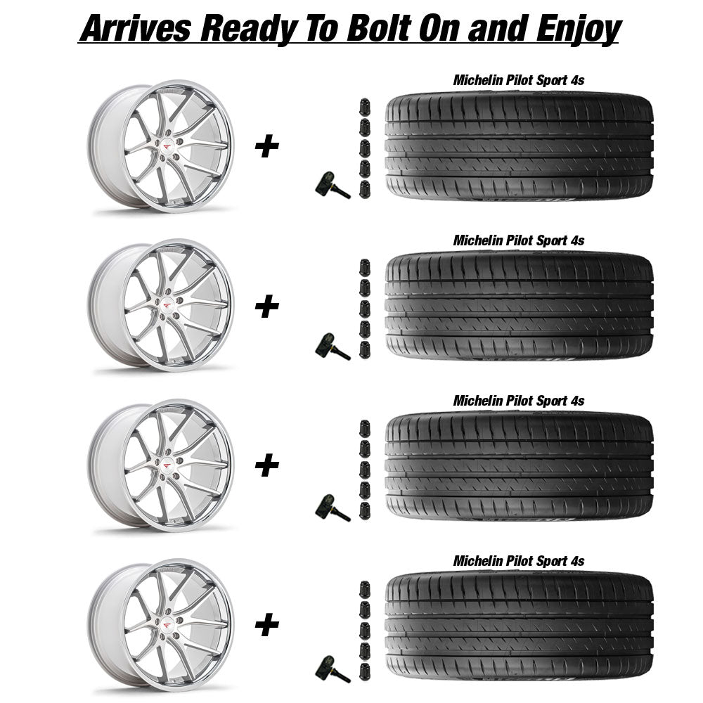 Ferrada FR2 Tesla Model 3 20" Front and Rear Wheel and Tire Package - Machine Silver