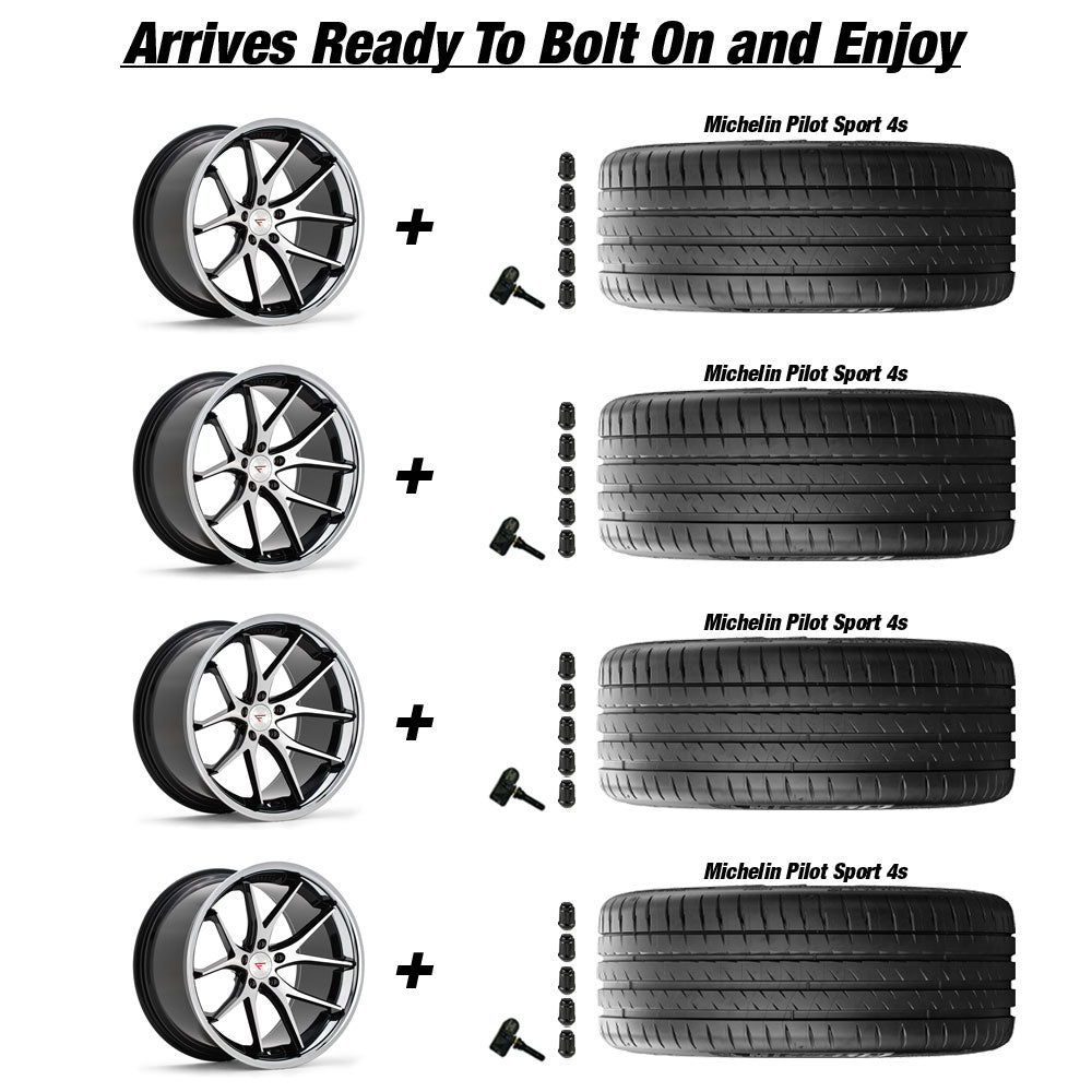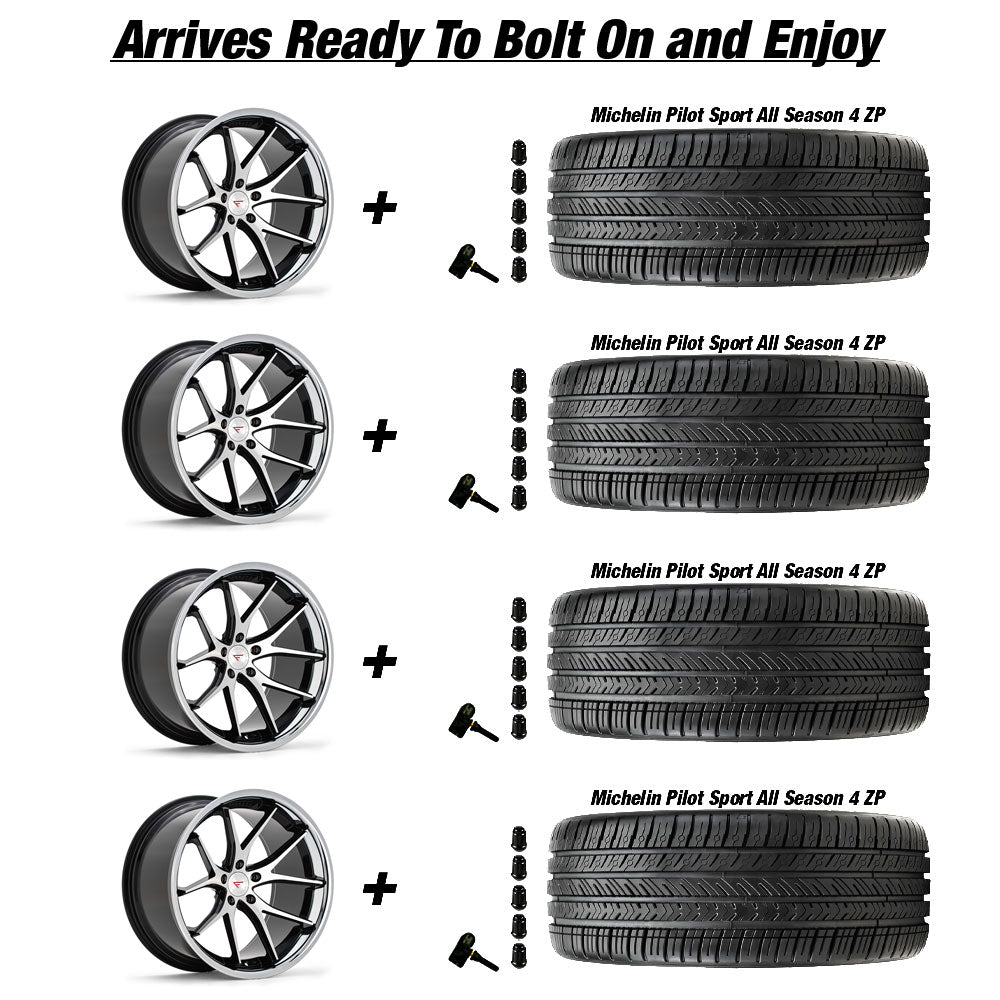 Ferrada FR2 Tesla Model 3 20" Front and Rear Wheel and Tire Package - Black w/ Machined Face