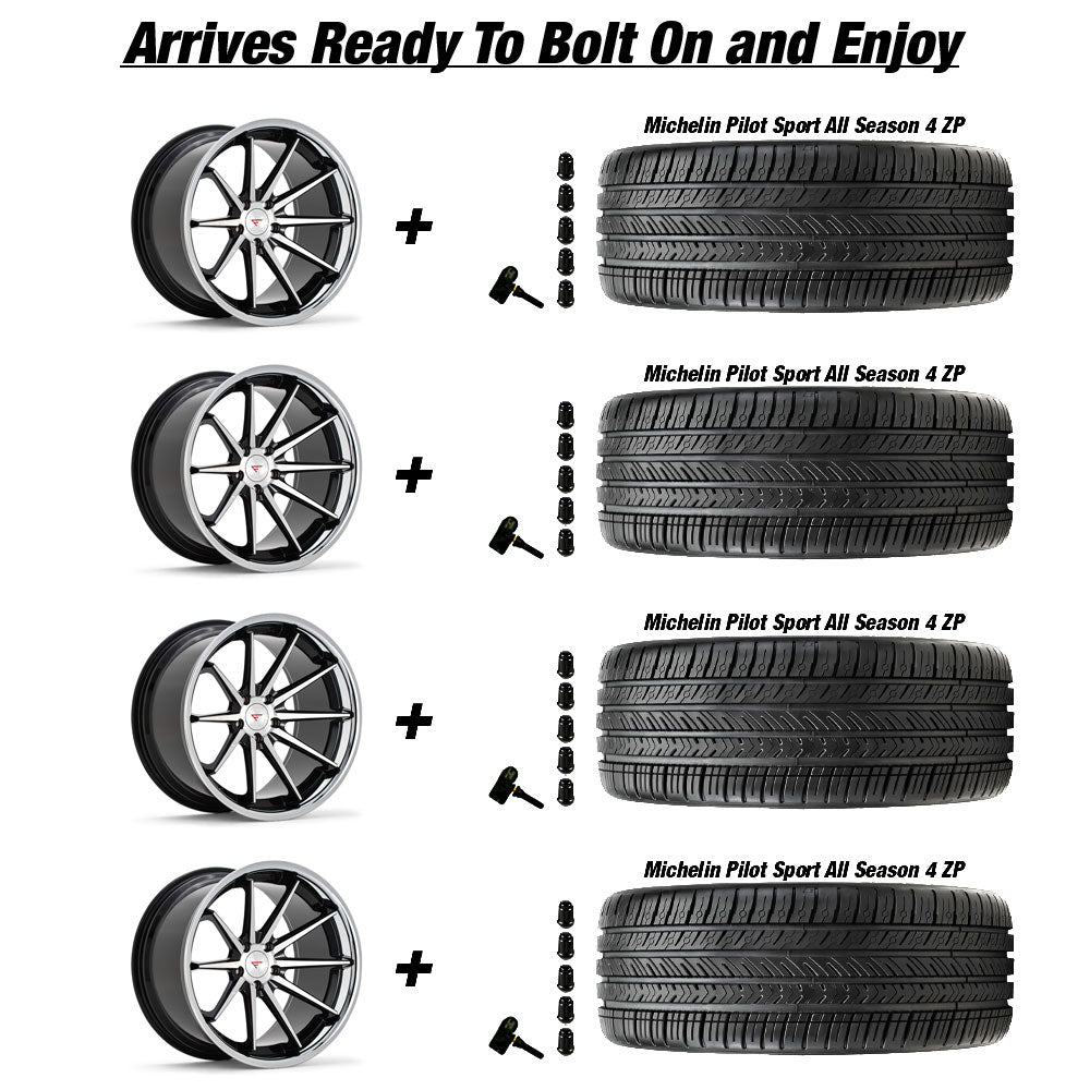 Ferrada FR4 Tesla Model 3 20" Front and Rear Wheel and Tire Package - Black w/ Machined Face