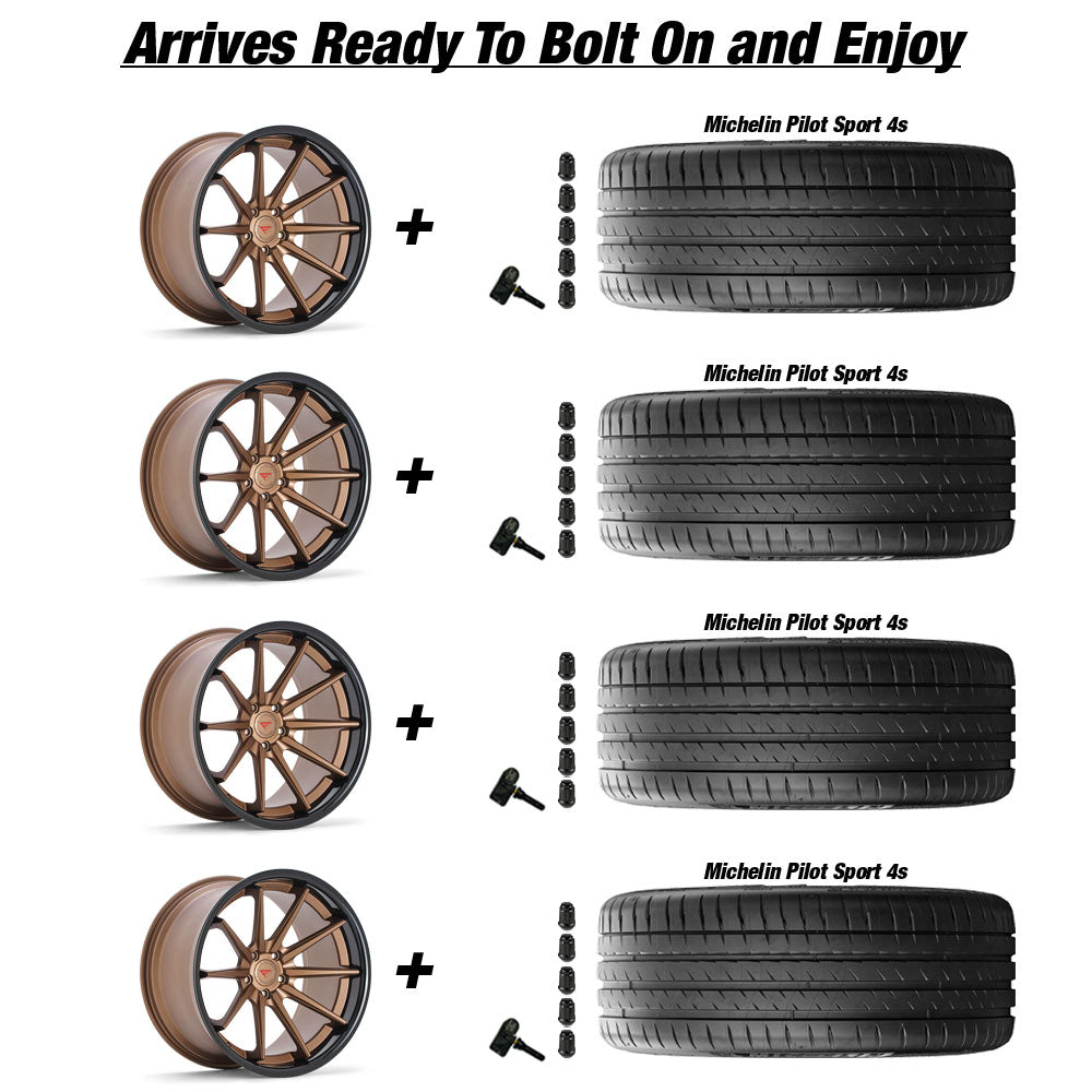 Ferrada FR4 Tesla Model 3 20" Front and Rear Wheel and Tire Package - Matte Bronze