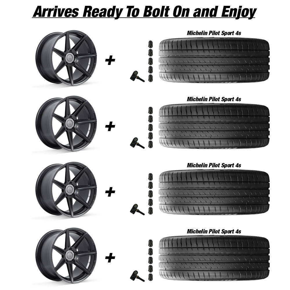 Ferrada FR7 Tesla Model 3 20" Front and Rear Wheel and Tire Package - Matte Black