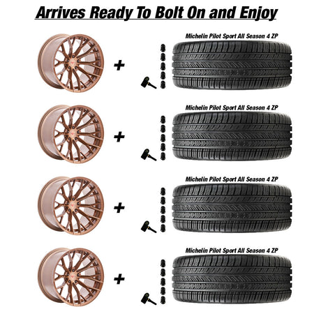 Ferrada FR9 Tesla Model 3 20" Front and Rear Wheel and Tire Package - Brushed Cobre