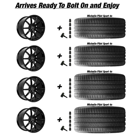 Forgedlite RFL-10 C8 Corvette 19" Front 20" Rear Wheel and Tire Package - Gloss Black