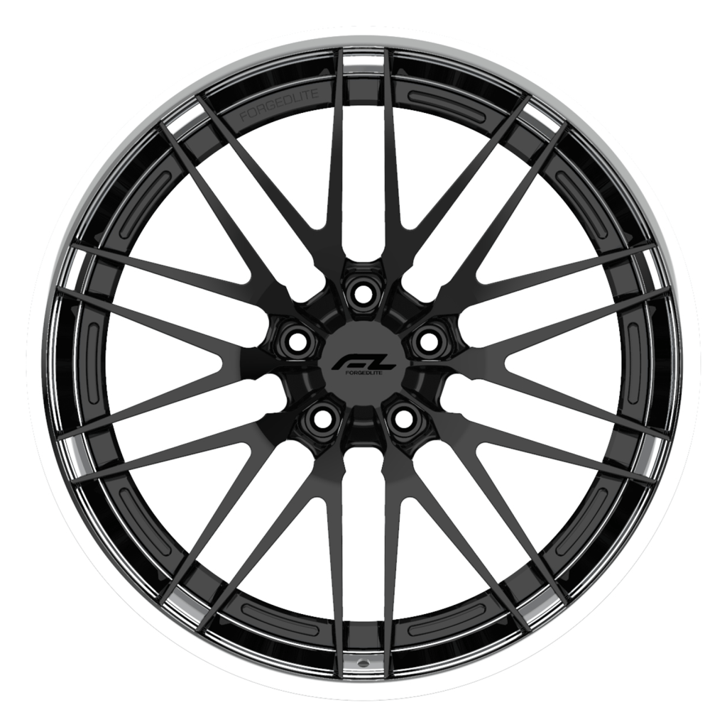 Forgedlite RS15 3pc C8 Corvette 20x9" Front 21x12" Rear Wheel and Tire Package - Gloss Black w/ Chrome Lip (Copy)