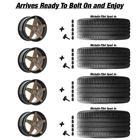 Forgedlite RS3 3pc C8 Corvette 20x9" Front 21x12" Rear Wheel and Tire Package - Bronze w/ Black Lip