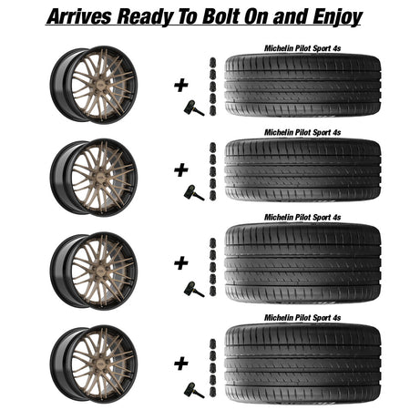 Forgedlite RS7 3pc C8 Corvette 20x9" Front 21x12" Rear Wheel and Tire Package - Bronze w/ Black Lip