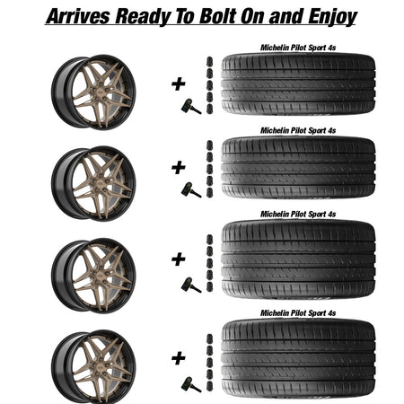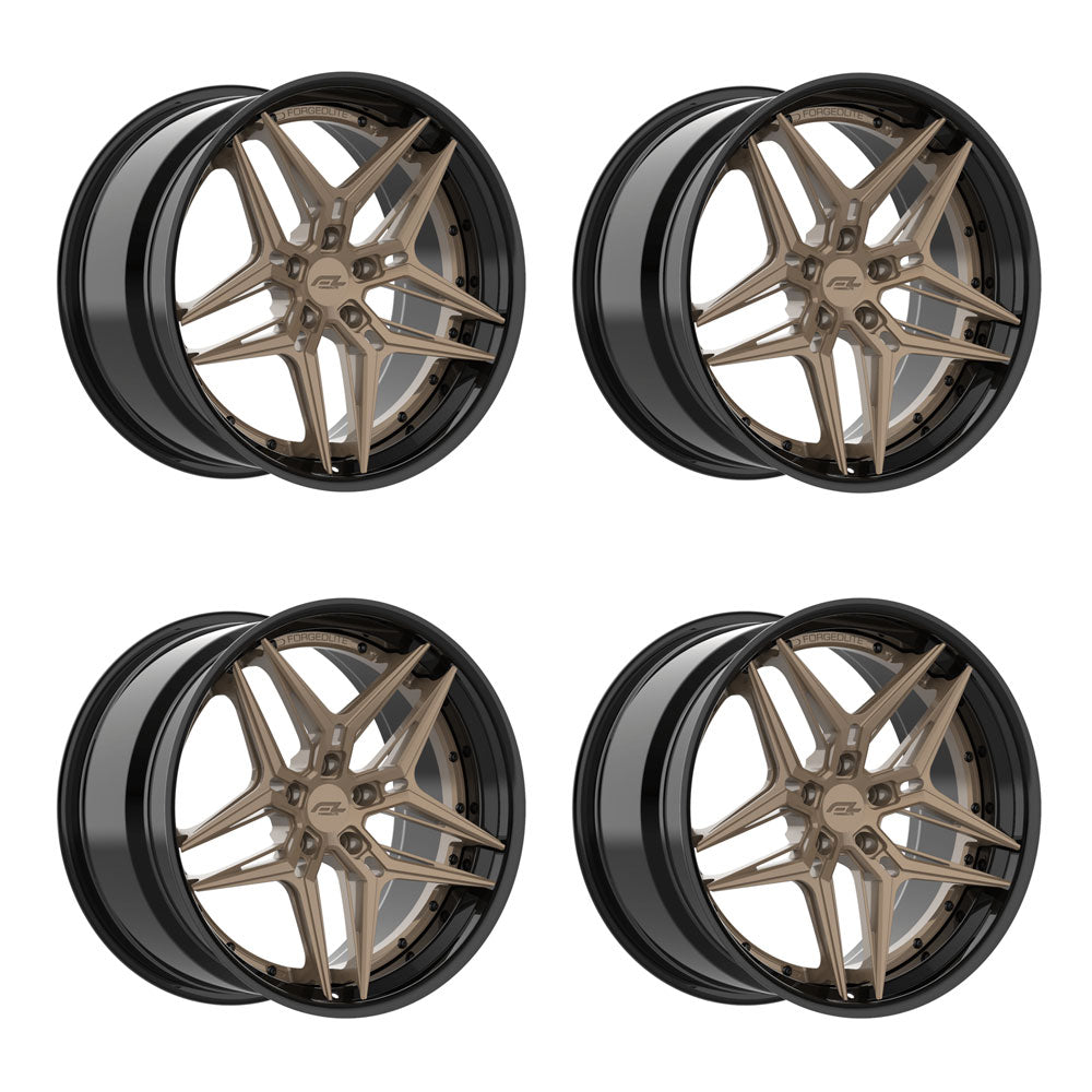 Forgedlite RS8 3pc C8 Corvette 20x9" Front 21x12" Rear Wheel and Tire Package - Bronze w/ Gloss Black Lip
