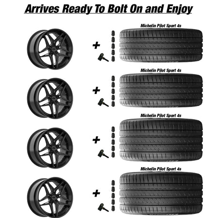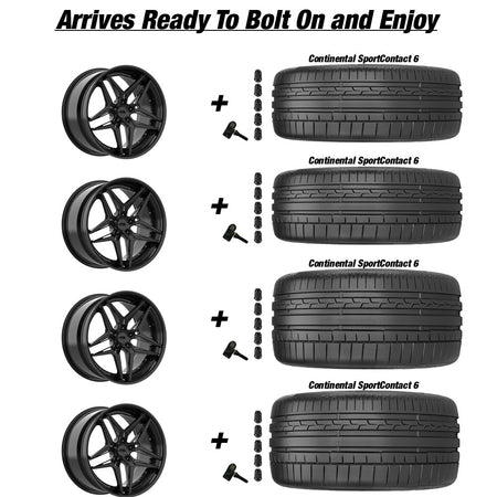 Forgedlite RS8 3pc C8 Corvette 20x9" Front 21x12" Rear Wheel and Tire Package - Gloss Black