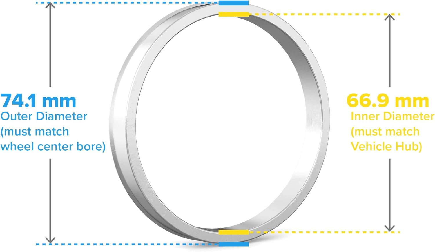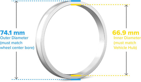 - (4) 66.9mm ID to 74.1mm OD Hubcentric Rings