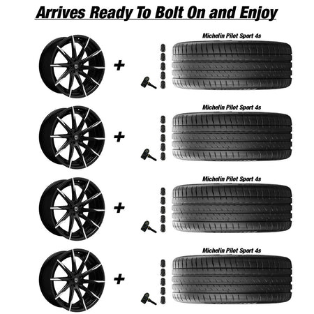 Lexani CSS-15 Tesla Model 3 20" Front and Rear Wheel and Tire Package - Black w/Machined Tips