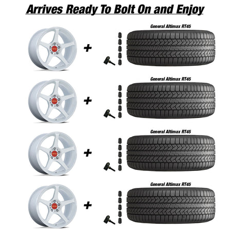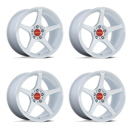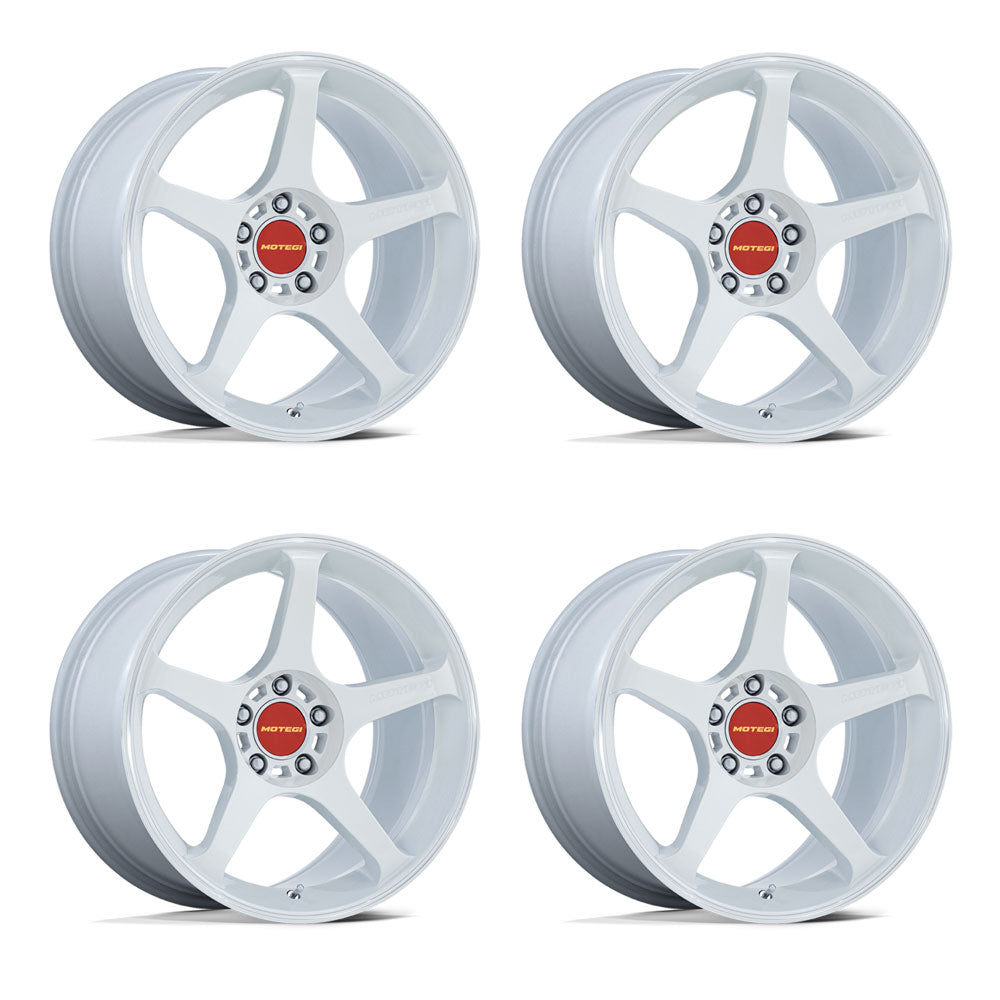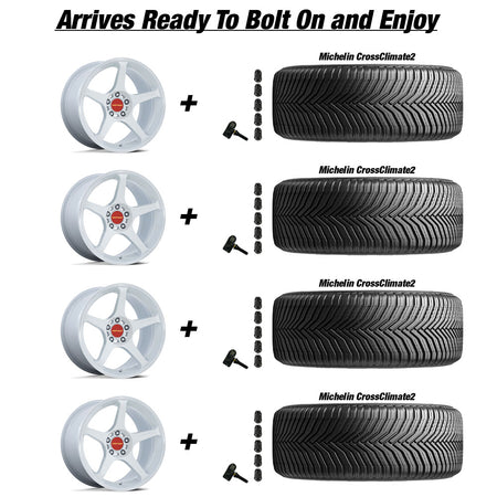 Motegi Battle V Tesla Model 3 18" Front and Rear Wheel and Tire Package - White Pearl