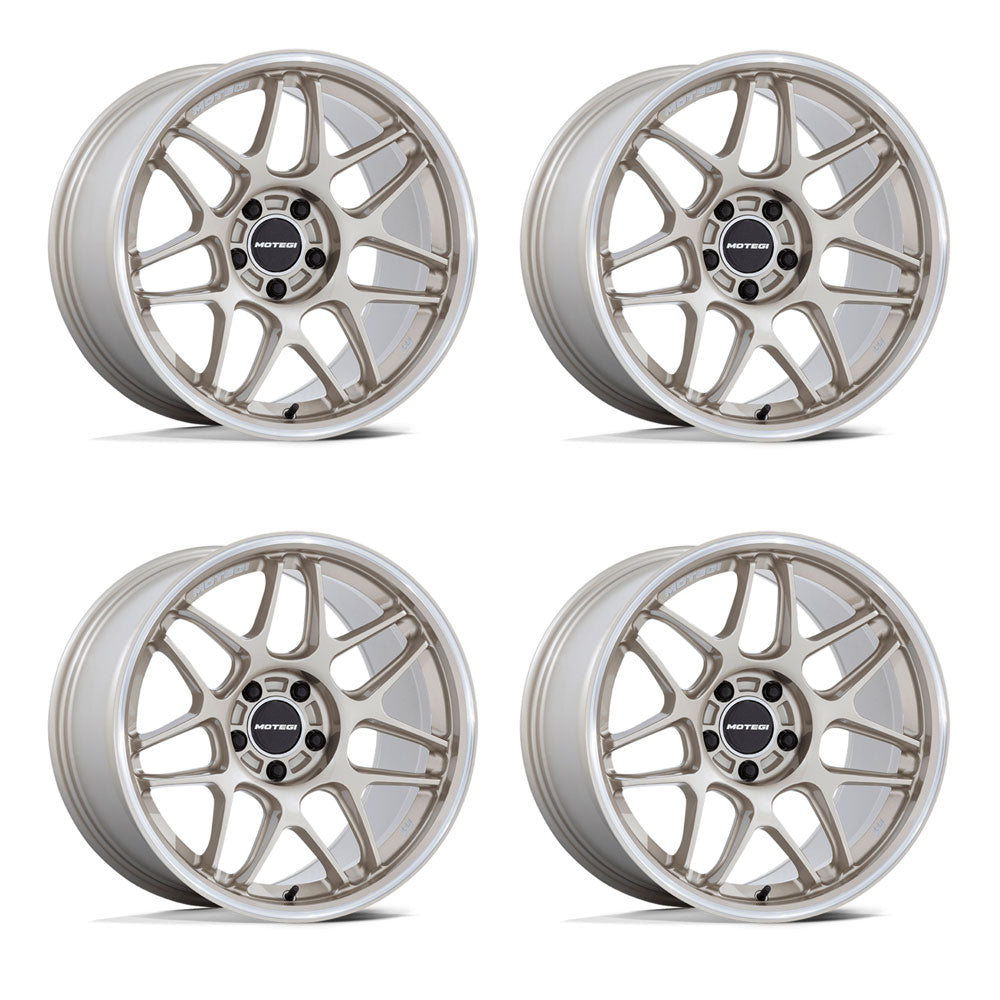 Motegi Tsubaki Tesla Model 3 18" Front and Rear Wheel and Tire Package - Gold w/Machined Lip