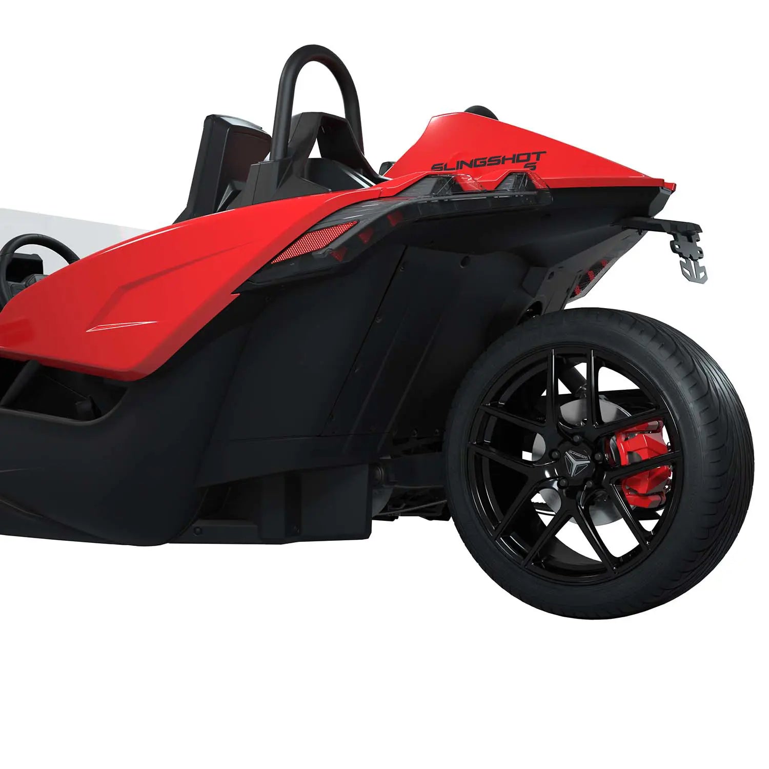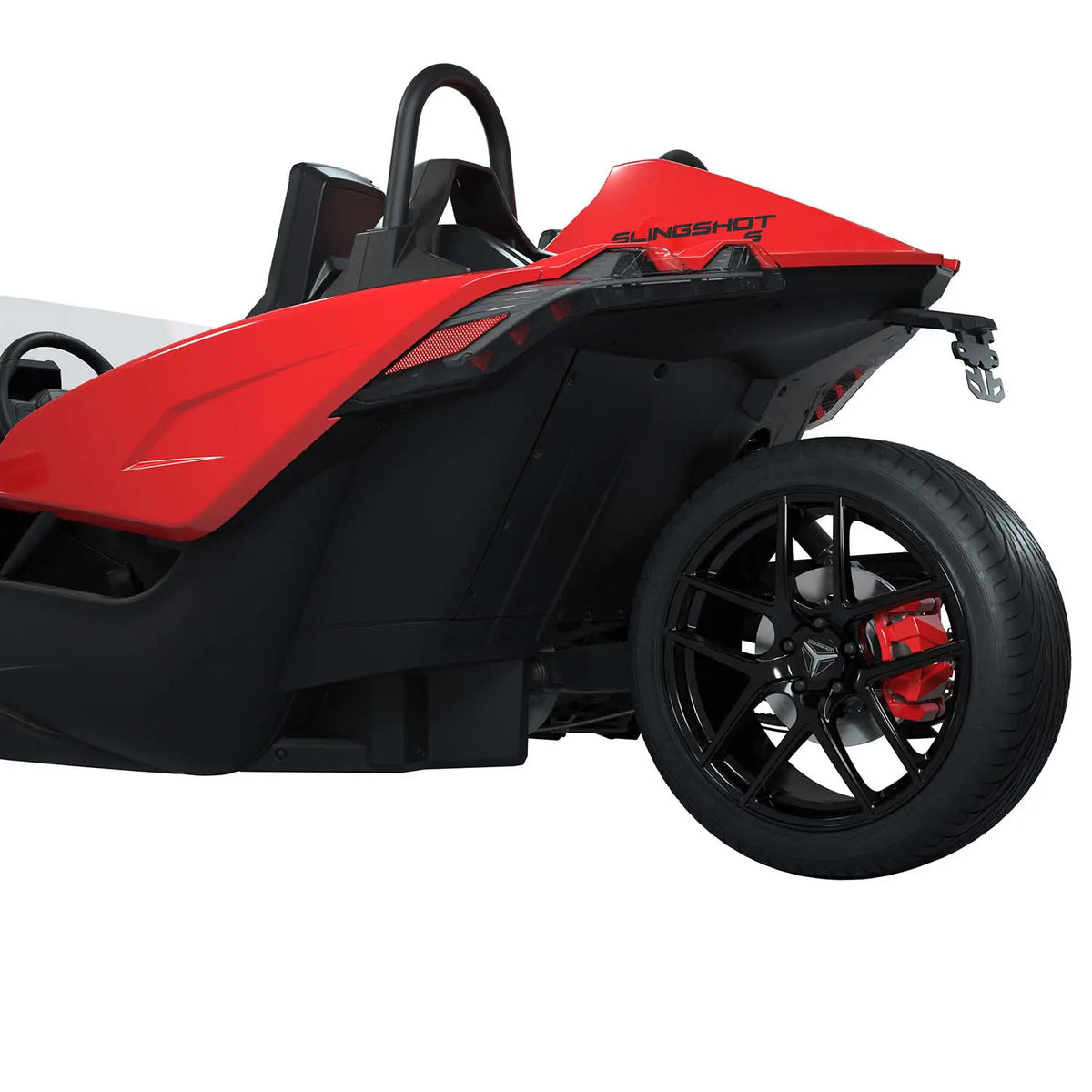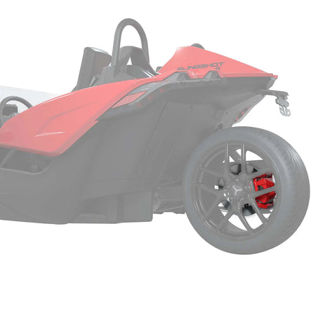 The premium BREMBO braking system with 4-piston painted calipers, and 339MM vented rotors improve the braking feel, aesthetics, and comfort of your Slingshot. This braking system offers increased sensitivity to the driver and pedal.